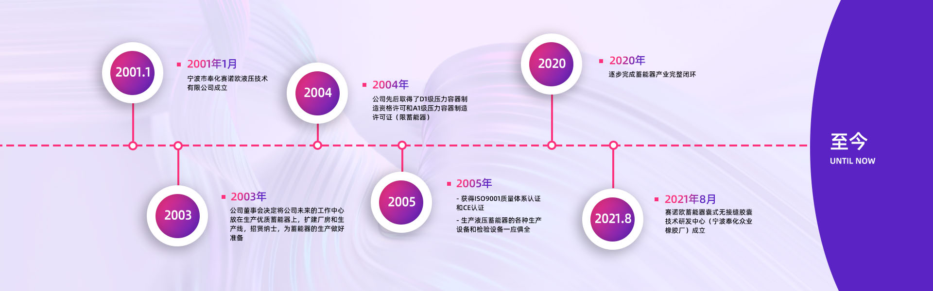 寧波市奉化賽諾歐液壓技術(shù)有限公司創(chuàng)建于2001年7月,是國(guó)內(nèi)優(yōu)秀的液壓蓄能器專(zhuān)業(yè)制造公司,制造設(shè)備齊全,檢測(cè)手段完善。同時(shí)也是探索蓄能器囊式結(jié)構(gòu)一體化的科研創(chuàng)新型企業(yè)。 2001年,公司董事會(huì)決定將公司未來(lái)的工作重心放在生產(chǎn)優(yōu)質(zhì)蓄能器上。公司一方面著手于廠房擴(kuò)建和生···